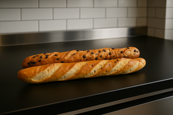 Moelleuse, légèrement sucrée et dorée au four, notre baguette briochée — nature ou aux pépites de chocolat — allie douceur et gourmandise à chaque tranche.