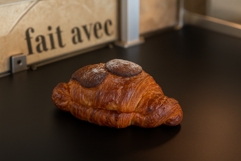 Un délicieux mélange de crème pâtissière onctueuse et de pépites de chocolat, enveloppé dans un feuilletage doré et fondant.